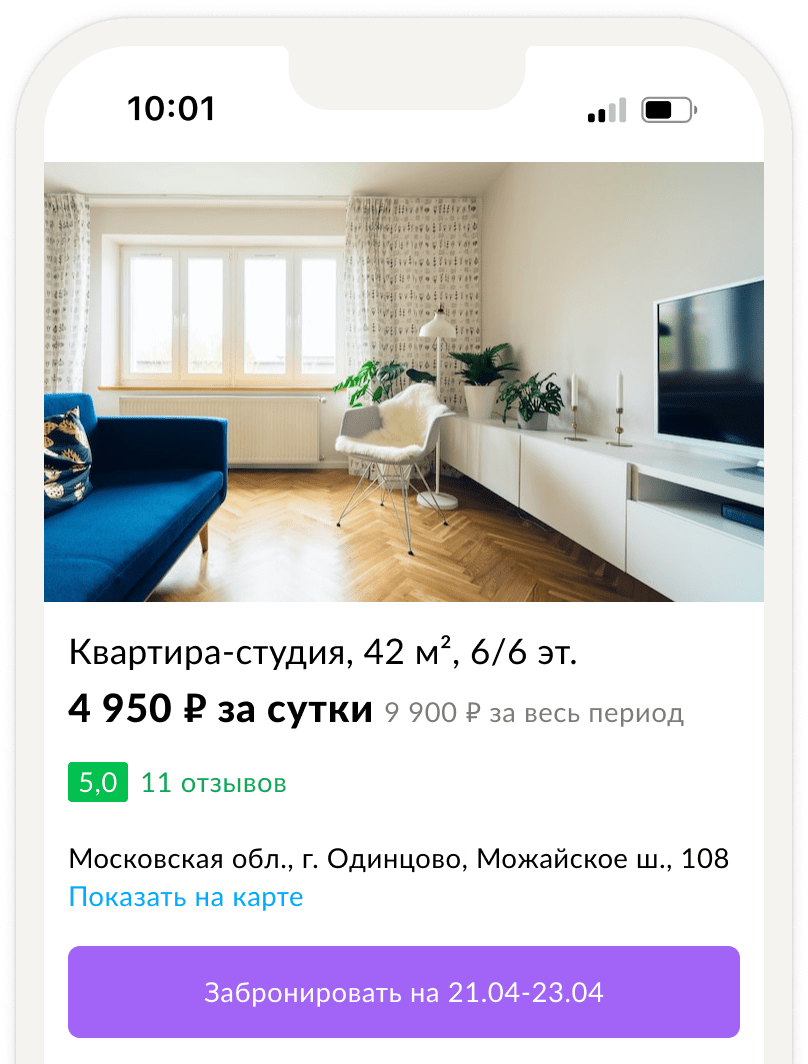 Мы развиваем сервис краткосрочной аренды жилья, который позволит гостям находить лучшие варианты в самых разных точках России, а хозяевам жилья — выгодно его сдавать и развивать бизнес.